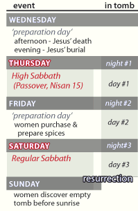 Matthew 12:40—(Question #1): “Jesus predicted that he would be in the grave 3 days 3 nights, but he was only in the grave two nights and one full day.”